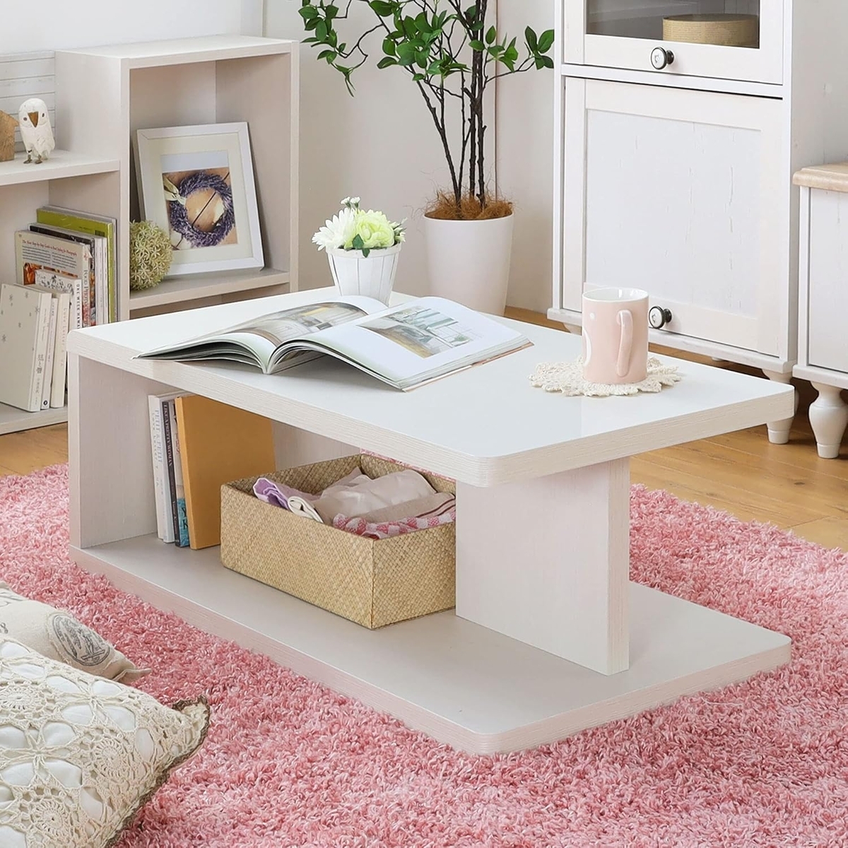清潔感のあるホワイトとやさしい木目が印象的な、白井産業のローテーブル「キアエッセ2」。